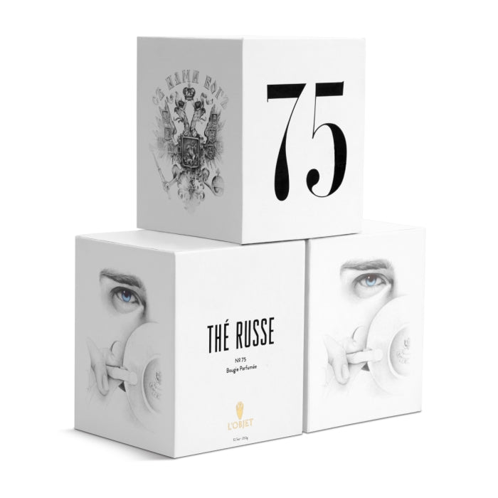 Paraffinwachs mit 100 % natürlichen Ölen und Essenzen, die Noten von Amber, russischem Leder, Patschuli und Zitronenschalen vereinen. Der Deckel dient gleichzeitig als bronzener Untersetzer und wenn die Kerze heruntergebrannt ist, wird das Porzellangefäß zu einem schönen Behälter.
