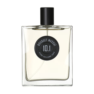 Die lebendige und geheimnisvolle Komposition, die sich damals als holziger Orientale zeigte, wurde zu einem florientalischen Kapitel umgeschrieben. Pierre Guillaume überarbeitete das Konzept olfaktorischer Bitterkeit in seinem Thema No. 10 und erzählt nun eine neue Geschichte: Bouquet Massaï No. 10.1.