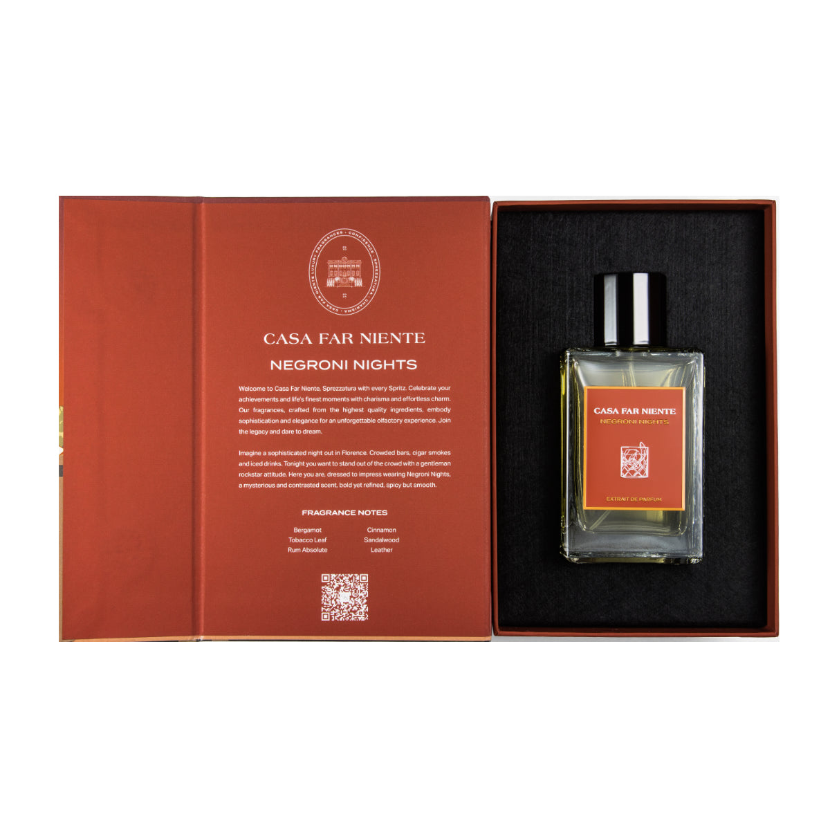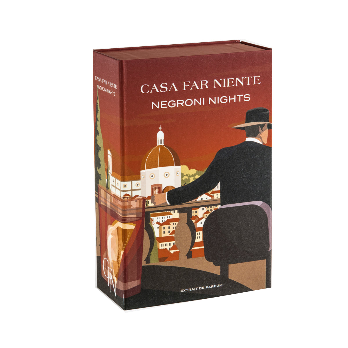 Stellen Sie sich einen eleganten Abend in Florenz vor. Gut besuchte Bars, der Duft von Zigarrenrauch und eiskalten Getränken. Heute Abend möchten Sie sich von der Masse abheben – mit einer Gentleman-Rockstar-Attitüde. Hier sind Sie, perfekt gekleidet, um Eindruck zu machen, mit Negroni Nights: einem geheimnisvollen, kontrastreichen Duft – kühn, aber raffiniert, würzig und doch sanft.