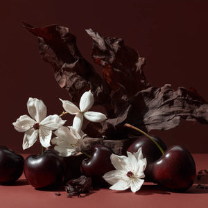Die Nacht dauert an, sinnlich und geheimnisvoll. „Rotes Gold“ – Safran – strahlt hell, während die dunkle Kirsche mit voller Intensität hervorbricht. Animalische Noten, Iris und schließlich Tabak-Absolue treten zart in den Vordergrund.