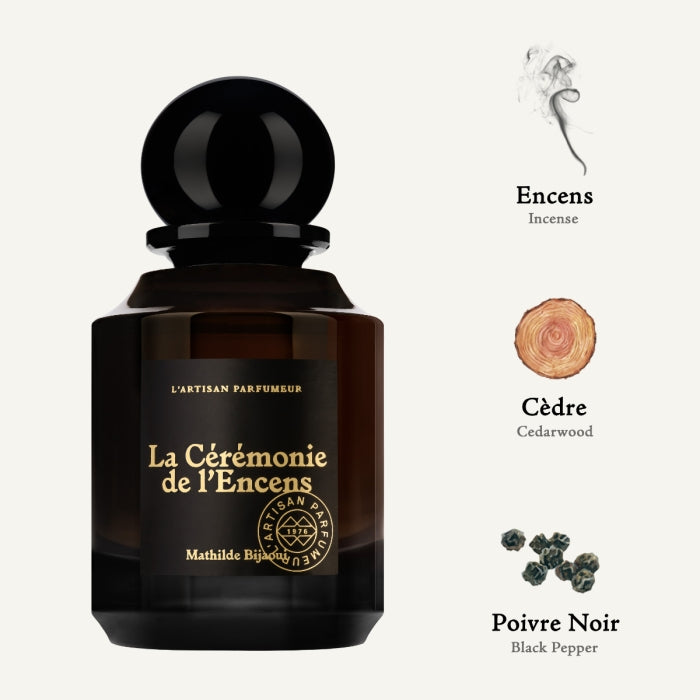 La Cérémonie de l'Encens ist mehr als nur ein Duft – eine Reise, ein Übergang vom Irdischen zum Geistigen. Es erinnert an vergangene Rituale, in denen Weihrauch die Verbindung zwischen dem Menschen und dem Göttlichem herstellte. Das Eau de Parfum ist das erste in der Kollektion L'Esprit du Parfum.
