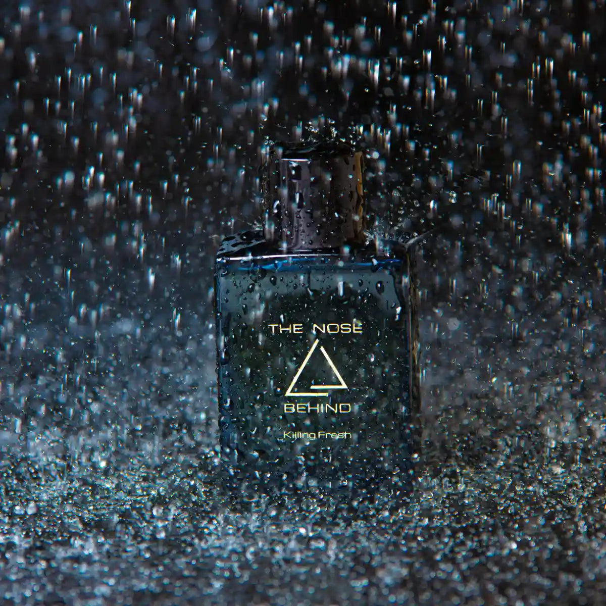 Killing Fresh von The Nose Behind dreht sich zu Beginn um herbe, bittere, zitrische Noten. Diese stammen von der japanischen Yuzu mit ihren charakteristischen Aromen, dann erscheint die Grapefruit; auch diese befindet sich eher in der herben, zitrischen Kategorie, kaum Süße, mit bitterer Würzigkeit. Dann zeigt sich die Bergamotte, das bittere, herbe Zitrusgewächs schlechthin. Alle drei besitzen keine der typischen süßen zitrischen Noten, wie wir sie alle kennen. Das Agrumentrio wird von Schwarzer Johannisbeere begleitet, die ein besonders subtiles Spiel fruchtiger Noten in die Kopfnote bringt. Die Würze von Kardamom trifft nun auf die zitrischen Nuancen des Eisenkrauts. Hinzu kommen daraufhin die Noten von grünem Tee, auch hier zeigt sich eine herbe Frische, die das Grasige des Tees bestens zu Geltung bringt. Die Basis besteht aus Moschus und Eichenmoos und einem Duett aus Benzoe und Ambra.