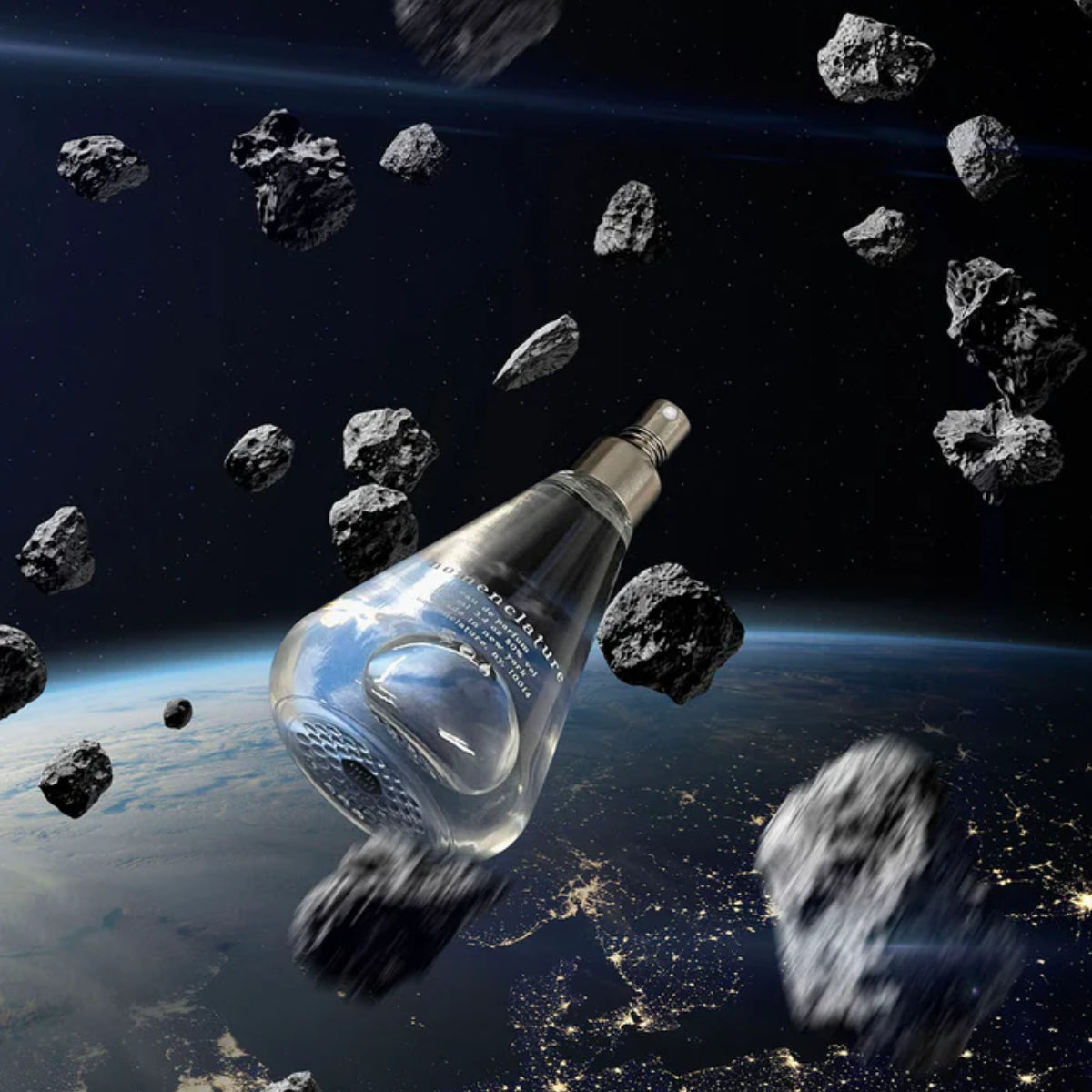 Der Flakon wurde von den reinen und klaren Linien des klassischen Erlenmeyerkolben inspiriert, eine Hommage an die Chemielabore, wo die aromatischen Komponenten entworfen werden. Wenn man die Flasche bewegt, ergeben sich faszinierende hologrammartige Effekte aus den „Impossible Molecules“-Mustern, die auf den Boden geprägt wurden. Um das Gesamtdesign so schlank wie möglich zu halten, gibt es keine Verschlusskappe. Der Sprüher aus gebürstetem Edelstahl wurde mit einer Spiralfeder ausgestattet, um ein versehentliches Drücken zu verhindern. Der Sprüher lässt sich aufschrauben, sodass die Flasche später anderweitig verwendet werden kann.