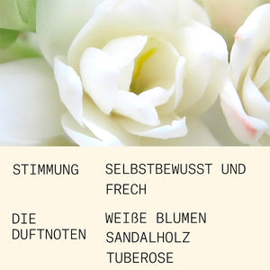 „Mit diesem Duft wollte ich das Versprechen erfüllen: alle schönsten weißen Blüten der Parfümerie zu vereinen. Konstruiert wie ein Brautstrauß, gleichzeitig prachtvoll und zart, liegt der Duft verschleiert hinter einem leichten Strahlenkranz aus geschlagener Sahne in einer nebligen Helligkeit.“ — Alexis Dadier, Schöpfer von Arme Blanche