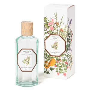 Eine botanische Wolke erhebt sich im Duft des Raumsprays von Carrière Frères. Seine facettierte Silhouette ist eine Hommage an antike Apothekergefäße und unterstreicht die pflanzliche Inspiration der Marke. Der Flakon aus recyceltem und wiederverwertbarem Glas hat die Form einer Apothekerflasche und ist an seiner bläulichen Färbung zu erkennen. Mit einem Deckel aus Eichenholz und einer silbernen Pumpe versehen, ist das Raumspray mit einer 100 % natürlichen Alkoholbasis gefüllt. Auf jeder Seite der Verpackung aus FSC-Papier (Forest Stewardship Council) finden sich zarte florale Illustrationen. Kein Zweifel, der nachhaltige Ansatz von Carrière Frères zelebriert die Natur!