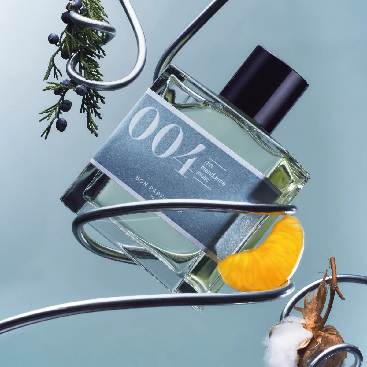 004 beginnt mit einer Gin-Note, die von Wacholderbeeren getragen wird, einer pikanten, kalten Würze, die dem Parfüm seine Kraft und Modernität verleiht. Die Parfümeurin hat sie mit einem Cocktail aus Zitrusfrüchten kombiniert, in dem italienische Zitrone, Bergamotte und Mandarine mit sonnenverwöhnter Vitalität erstrahlen. Ein herzerwärmender Hauch von Muskatnuss bildet den Übergang von der Herznote zur Basisnote aus indonesischem Patschuli, das mit seinen erdigen, moosigen Noten von geräuchertem Holz Wärme in diesen eisigen, spritzigen Cocktail bringt. Tabak, Tonkabohne und weißer Moschus runden das Parfum ab und verleihen ihm einen langen Atem – genug, um den Barkeeper in Ihnen zu wecken.