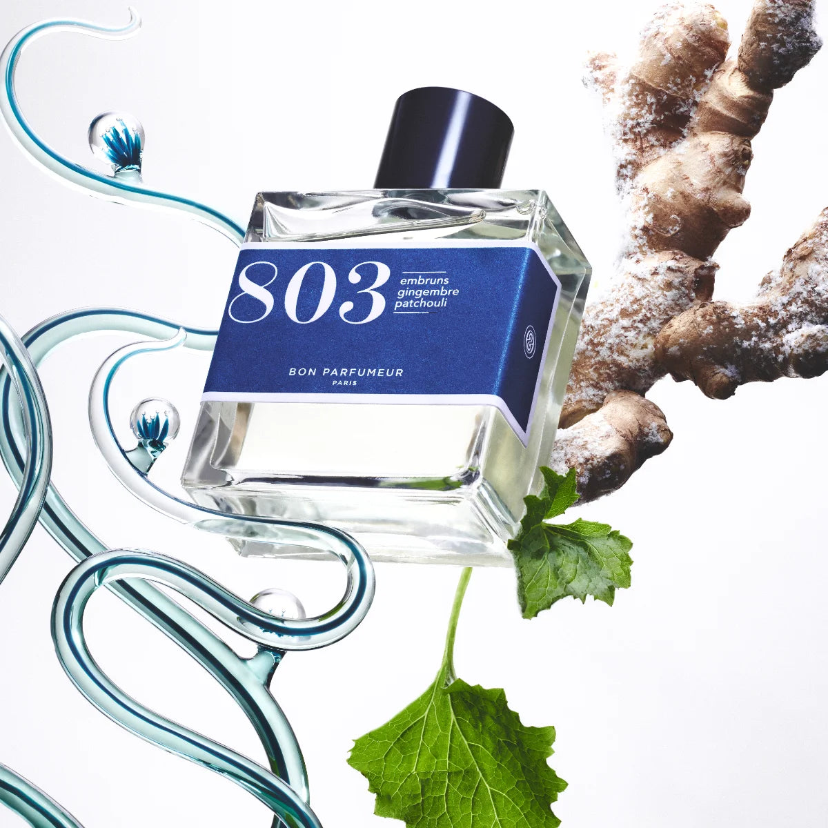Unter dem Eis. Alles ist still, kristallisiert, ein leises Knacken ist zu hören. Ein Patchouliblatt, gefangen im Eis. Eine spürbare Spannung zwischen heiß und kalt. Der Duft beginnt mit der frostigen Note maritimer Akzente, erwärmt durch eine würzige Kombination aus Ingwer, rosa Pfeffer und Wacholderbeeren. Das Patchouli ist intensiv, warm und kraftvoll, ein in Eis eingefangenes Paschouliblatt.