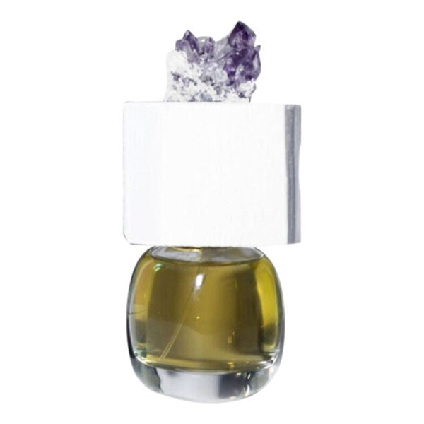 Auch die Verpackung erzählt von der Beziehung zwischen Filippo und Bianca. Sie wurde vollständig von Hand gefertigt: Der Duft steht in einer schwarz-weißen Schachtel mit den inzwischen stilistisch erkennbaren Motiven von Filippo Sorcinelli und wurde mit einer schillernden Folie überzogen. In der weißen Holzkappe ist ein echter Amethystkristall eingelassen.