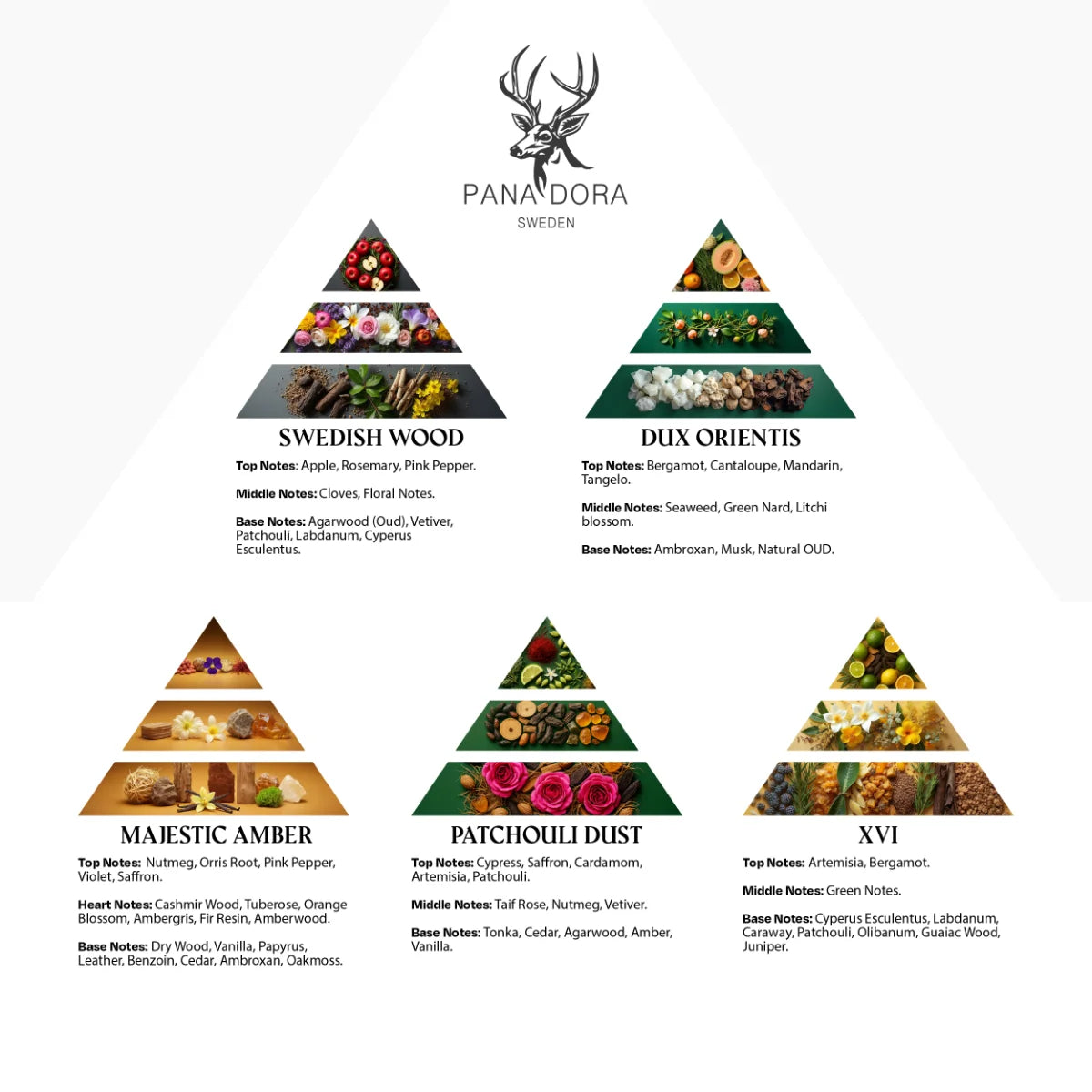 Diese Kollektion, die seltene Ingredienzien enthält, wurde mit Leidenschaft, Präzision und Glamour geschaffen, die schließlich in den wunderschönen kristallgeformten Parfümflakon mit dem majestätischen Kopf des schwedischen Hirsches mündet. Das macht Pana Dora zur Heimat der authentischsten, einzigartigsten und originellsten Parfümkollektion, die von Schweden inspiriert wurde.