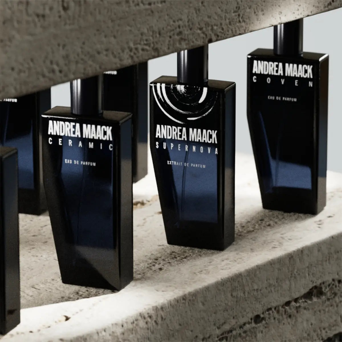 When Andrea Maack designs a new fragrance, she explores themes such as clarity, natural freshness and scientific discovery. She then captures the essence of her art with absolute precision. The result is a range of premium unisex fragrances presented in exquisite obsidian-inspired bottles.