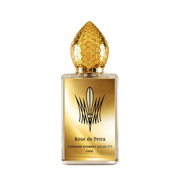 Rose de Petra is presented in a transparent flacon with genuine gold lettering, gold cap and a small-faceted peach-coloured Swarovski crystal set on the stylized crown.