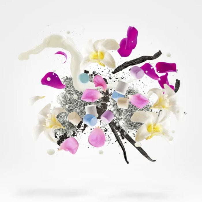 Blending delicate rose petals, the fragrance reveals a floral elegance with gourmand facets in the base of the composition, with notes of vanilla, white musk and delicious caramel.