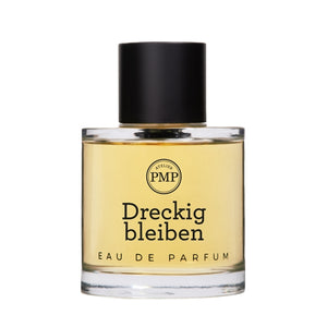 The perfume’s inherently contradictory name, Dreckig bleiben (German for “stay dirty”), also stands for a general counter idea to repeated and seldom-held false promises.