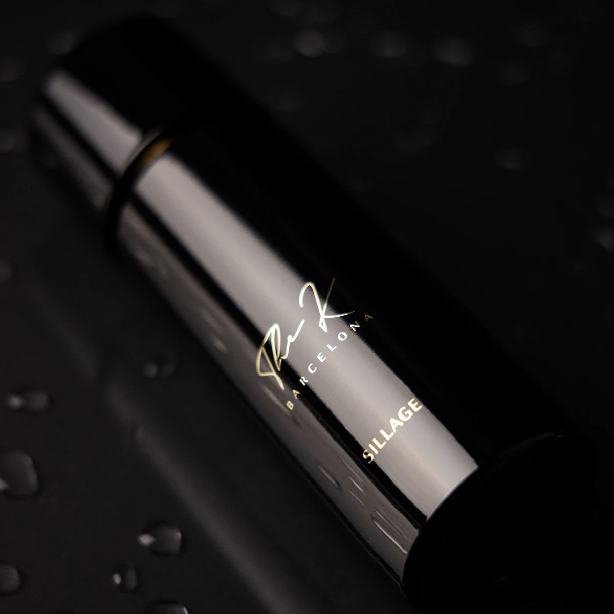 The composition opens with notes of oud, but not as a clear image – more as an after-image. Agarwood usually takes over the entire space, giving the scent a dark undertone — in Sillage, the oud is a light ribbon along which the other ingredients have been arranged. Imagine a vast, open landscape, rugged hills closing the horizon, with clear-cut parallel lines slashing the image into two equal parts. We blurred the lines with subtle notes of saffron and violet, which act like a gentle motion softening the contours, a barely noticeable vibration. Sillage is a fragrance balancing on the verge of impressions. Its individual elements are fluid, as if in constant motion. It transports us from the dry roughness of resins to the warm embraces of musk and vanilla discreetly and quietly. A sillage usually says “I’ve been here”. The scent boldly states “I am present” — like an aftertaste, an imprint of a body on the sheets, the emotion left by a touch.