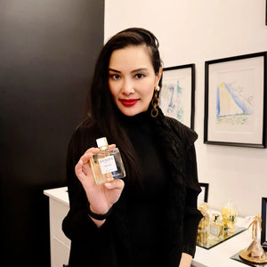 Wishing to give the fragrance a modern touch, I created my own Muguet Accord, and used it like the main color in an aquarelle painting: softly blended with a variety of other floral notes (Jasmine, Tuberose, Ylang-Ylang, Tea Rose Accord), accented with luminous aldehydes. Warm Heliotrope, sensual Vanilla and aromatic Siamese Woods complete a perfume that is altogether current and timeless.