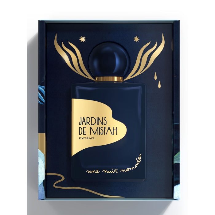 Recreating an Eau de Parfum as an Extract is not as simple an exercise as it seems. You have to know how to keep the strengths of the original while bringing new contrasts to reinvent its signature. I took what was key to the sillage of ‘Jardins de Misfah’ and raised it to an even higher level of sensuality and desire. At the centre of the perfume are dates, which have a much richer treatment with a note of date honey supported by the balsam and vanilla accents of benzoin. The floral heart is built around rose water, delicate and fresh in the eau de parfum, and becomes smooth and sweet with a duo of essence and rose absolute. Finally, this rose-date honey accord is reinforced by the spicy and leathery effect of the saffron, making this new extract a sultry and irresistible version of Jardins de Misfah. – Jérôme Di Marino