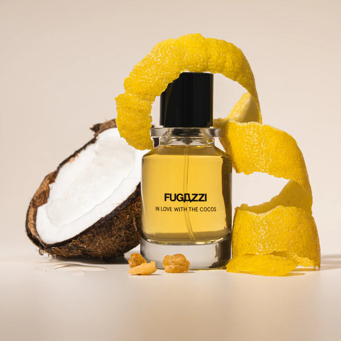 In Love With The Cocos is an ode to summer romance. Influenced by sandy sunscreen touching the skin and sticky cocktails spilt in ecstasy across a bar. This fragrance is zesty and rich. Filled with notes of lemon drops, coconut water, and gentle touches of amber and musk, this is, quite simply put, good times in a bottle.