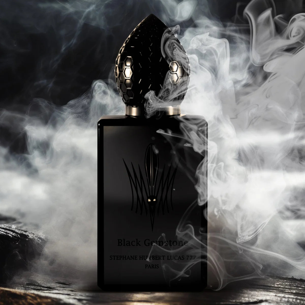 Black Gemstone is presented in a shiny black lacquered flacon, silkscreened black matte letters and logos, shiny black cap and a small-faceted black Swarovski crystal set on the stylized crown.