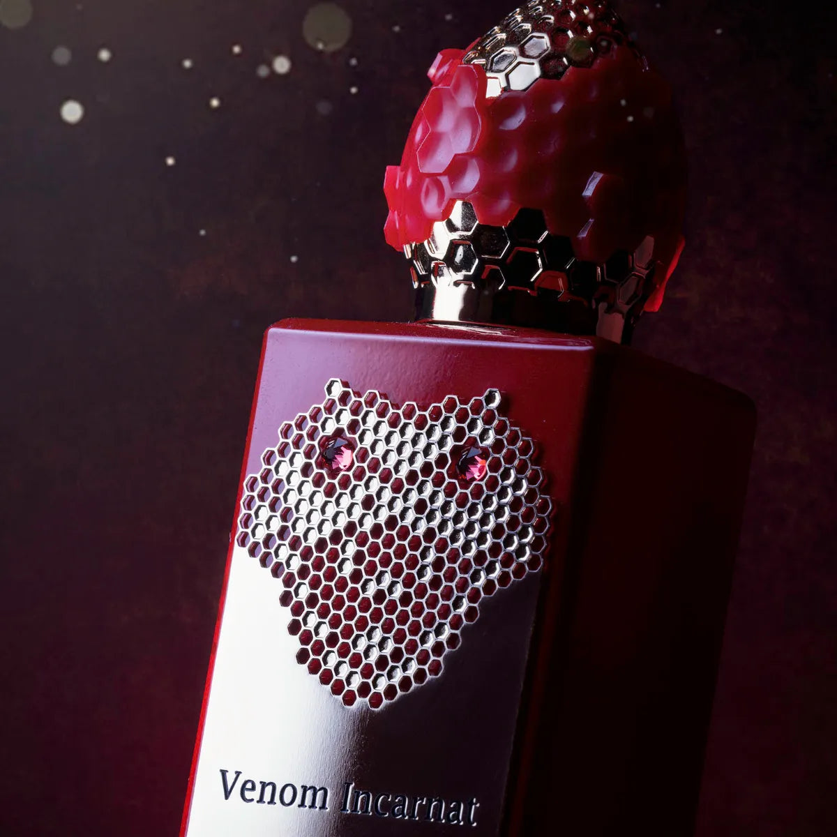 Venom Incarnat is a terrific love potion created to make you irresistible. A mystical, bewitching and fascinating elixir to conquer the heart of the coveted one like the delicious poison of a passionate bite. Its red colour is a subtle blend of venom, strawberry, and glamour and its scent an aphrodisiac heart of leathery and sophisticated amber. This addictive and stimulating fragrance reveals the thrills of the flesh and the dreams of the soul.