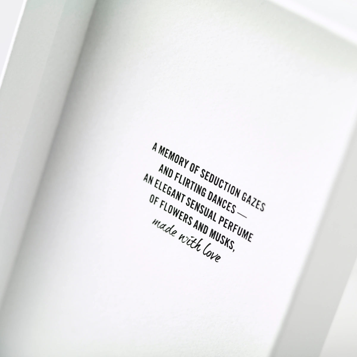 Sara Carner grew up with five siblings in a traditional family of Spanish leather manufacturers in Catalonia. Even as a child, she developed the courage to explore and transcend the narrow confines of her childhood in rural idyll. This trait, combined with her early passion for collecting scented candles and perfume bottles, led her to study at the renowned Columbia University in New York and pursue a career in the international cosmetics business, where she worked with the best and the brightest in the industry. Always with her: memories of her sheltered childhood, places, people and unique encounters, as well as a growing desire to combine her passion for fragrances with her professional experience. Back in Barcelona, she realised her dream and founded Carner Barcelona. The flacon design reflects the seamless connection between old craft traditions and modern forms. The simple glass cube of the bottle feels unexpectedly heavy in the hand, accentuated by the solid beech wood cap. Like the exclusive embossing on the cardboard and label, the material and colour are characteristic elements of traditional Spanish craftsmanship and are also a nod to the Sara Carner family's generations of leather craftsmanship.