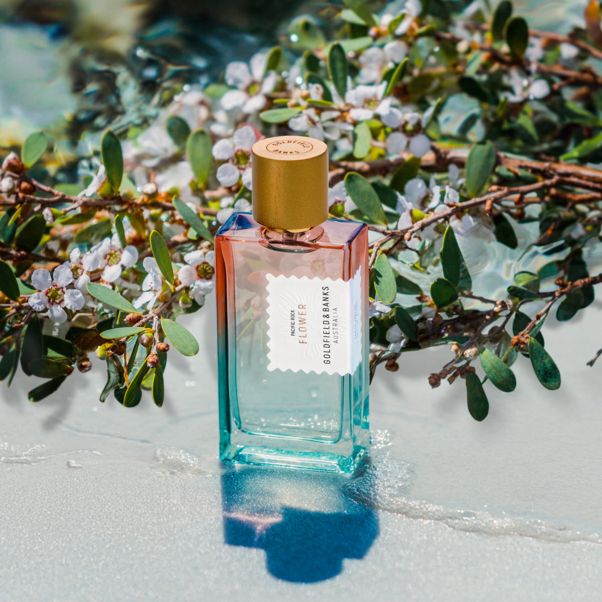 To capture the untamed elegance of Australia’s coastal flora, Goldfield & Banks created a perfume built around the native Coastal Tea Tree, a plant known for its delicate white blooms and resilience against wind and salt. Working with renowned perfumer Emilie Bouge at Robertet, Pacific Rock Flower was composed using this essential oil, known for its eucalyptus-tinged freshness and natural clarity.