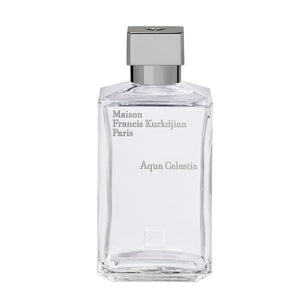With Aqua Celestia, Francis Kurkdjian creates a new form of freshness from the combination of lime from Mexico, mint from England and blackcurrant from Burgundy. Together they form a fresh, colourful and generous top note that gently lingers with the sunny luminosity of mimosa from Provence and the heavenly whisper of musk.