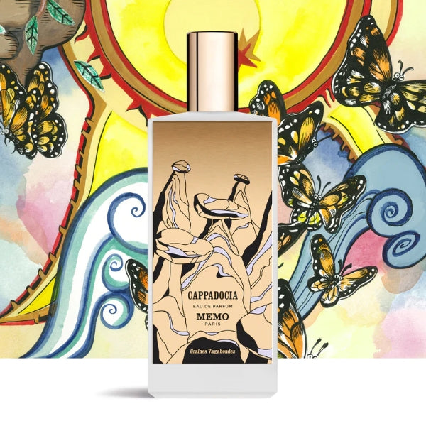 Here, in Cappadocia, at the heart of Türkiye, the earth retains the memory of an unblemished emotion, a shiver of saffron, sandalwood and myrrh surfaces on the skin. Impressive, ancestral formations rise up like exclamations to the sky. They are known as ‘fairy chimneys’, natural pillars of soft, friable rock shaped by volcanic eruption, the passage of time and the weathering of the elements. They watch over the mountains, craters, plateaus and gorges, over the underground and cave-dwelling cities. The palette of Cappadocia is organic, carnal: white jasmine, ochre benzoin, Turkish rose, gold vanilla and tawny sandalwood. Come nightfall, a purple iris arrives, and then the chimney tops secretly open, releasing the caressing perfume of flowers, resins and woods: a message to the stars. A multicoloured hot-air balloon appears on the horizon; the passengers in its basket sail above the landscape’s varied facets, swept away by its airy, scent-filled beauty. The fragrance Cappadocia makes this a dream come true.