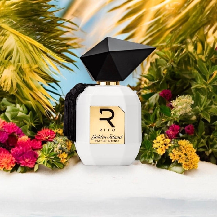 Golden Island: Let the gentle breeze brush through your hair and feel the warm sand beneath your feet. A touch of paradise captured in a bottle.