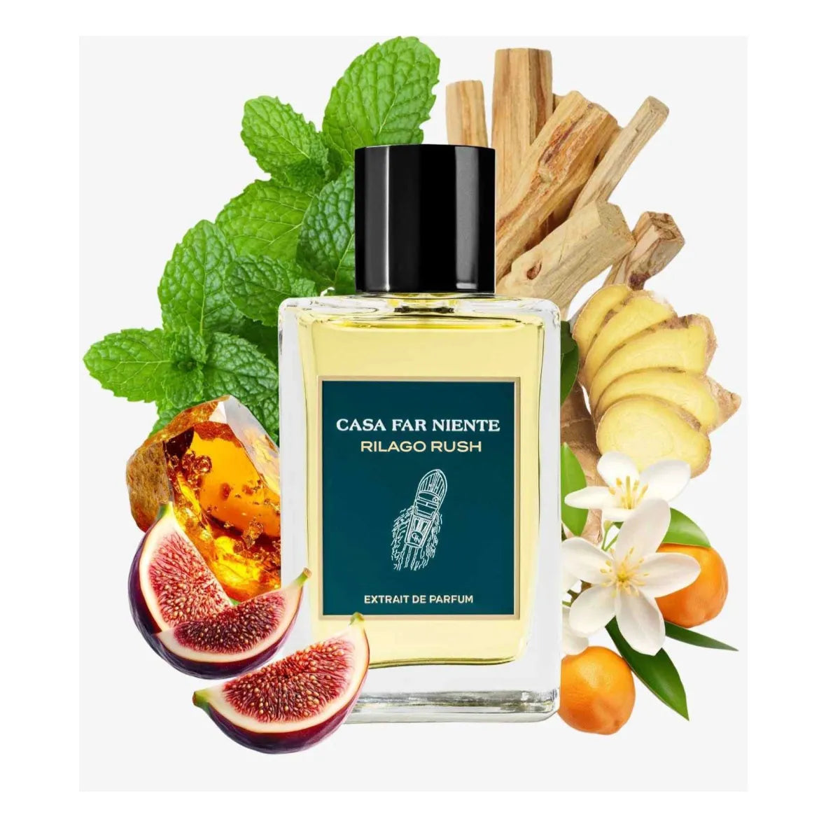 “I imagined Rilago Rush as ballad on an Italian lake. The warm summer air is filled by fruity nuances of fig and mingles with the woody ambiance of a boat day. This fragrance is joyful, it has character, it's a ray of sun in a bottle.” — Céline Barel