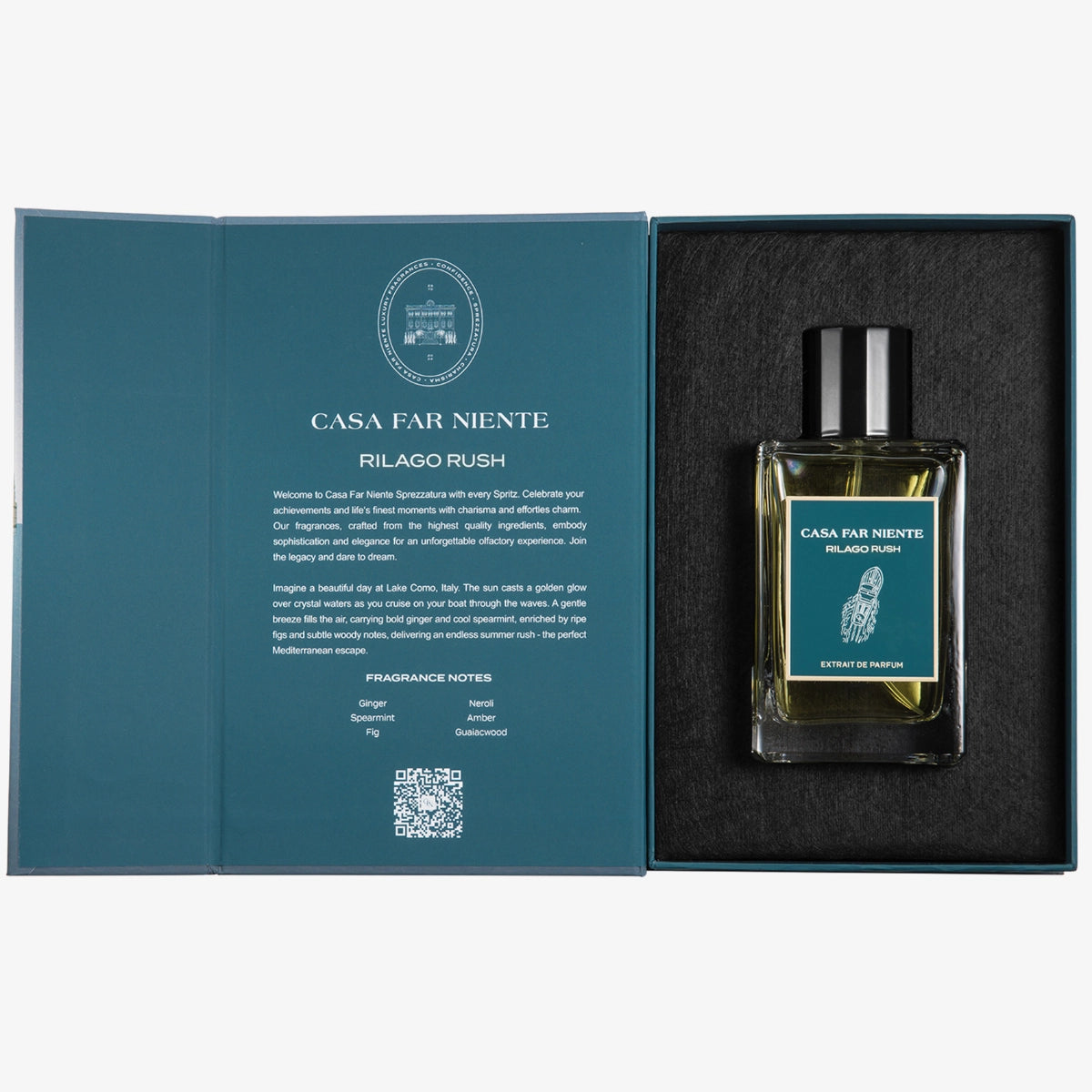 Imagine a perfect summer day at Lake Como, Italy. The sun casts a golden glow over crystal-clear waters as you glide effortlessly through the waves on your boat. A gentle breeze fills the air — infused with refreshing ginger, cool spearmint, ripe fig, and soft woody notes. A fragrance like an endless summer rush.