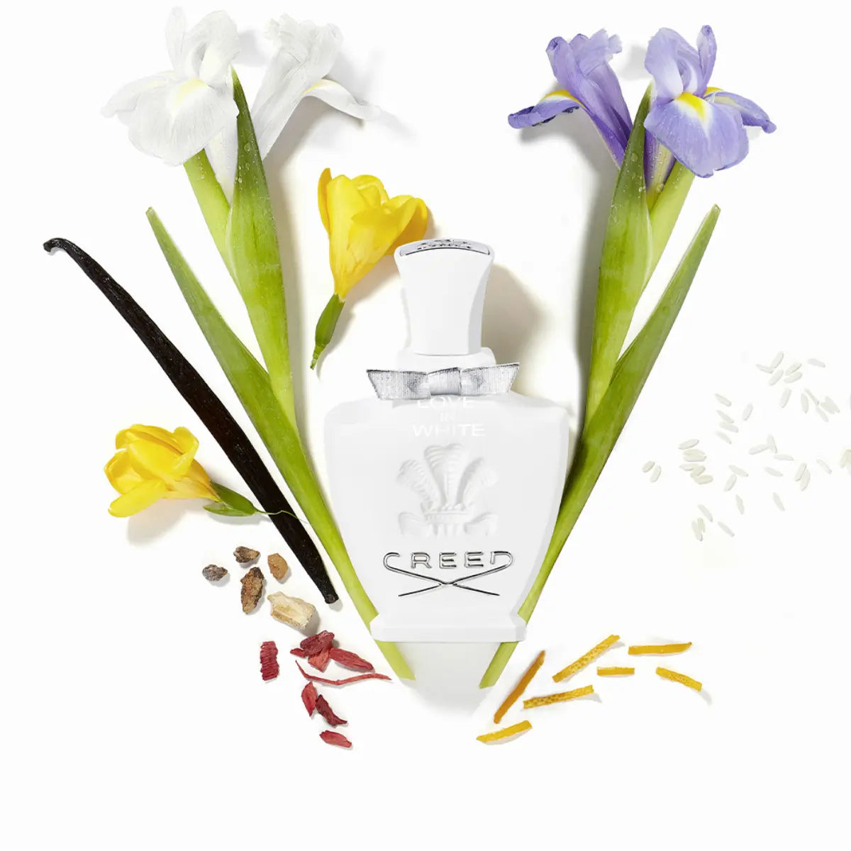 Olivier Creed has once again captured the hearts of women everywhere: Love in White – the composition from Creed – is a tribute to love. Love in White is like a bridal bouquet, exuding floral, white notes and soft, sensual oriental accents.