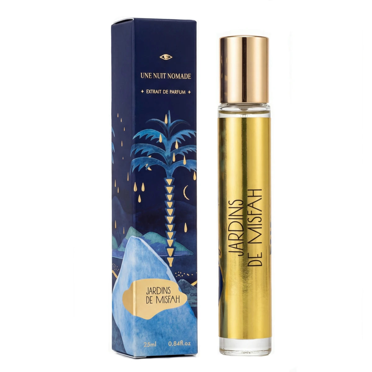 Recreating an Eau de Parfum as an Extract is not as simple an exercise as it seems. You have to know how to keep the strengths of the original while bringing new contrasts to reinvent its signature. I took what was key to the sillage of ‘Jardins de Misfah’ and raised it to an even higher level of sensuality and desire. At the centre of the perfume are dates, which have a much richer treatment with a note of date honey supported by the balsam and vanilla accents of benzoin. The floral heart is built around rose water, delicate and fresh in the eau de parfum, and becomes smooth and sweet with a duo of essence and rose absolute. Finally, this rose-date honey accord is reinforced by the spicy and leathery effect of the saffron, making this new extract a sultry and irresistible version of Jardins de Misfah. – Jérôme Di Marino