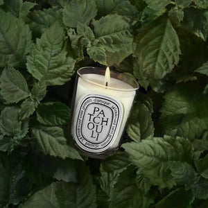 Frisch geschnittene Patschuliblätter, die in der Sonne trocknen. Einmal entzündet, entfaltet diese Kerze ihr volles Parfum: dicht und dunkel, geprägt von erdigen, holzigen, fast kampferartigen Akzenten. Der Raum verwandelt sich in einen geerdeten Zufluchtsort.