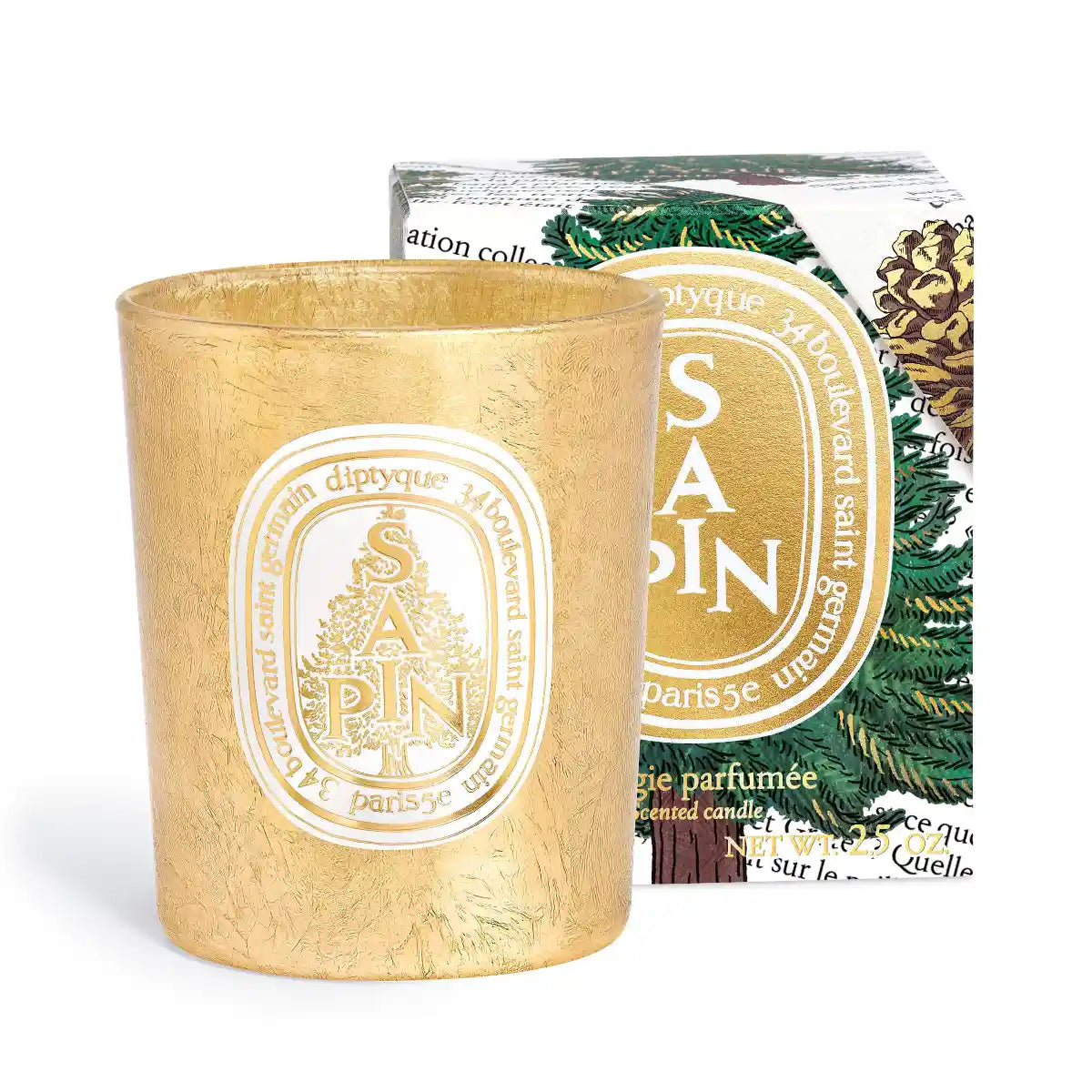 Die Sapin-Kerze erstrahlt in festlichem Glanz – ganz wie in Diptyques Feiertagsgeschichte. Auf ihrem Etikett vermischen sich die tanzenden Buchstaben des Hauses mit einem Tannenbaum und fangen so die ganze Poesie des Winters ein.