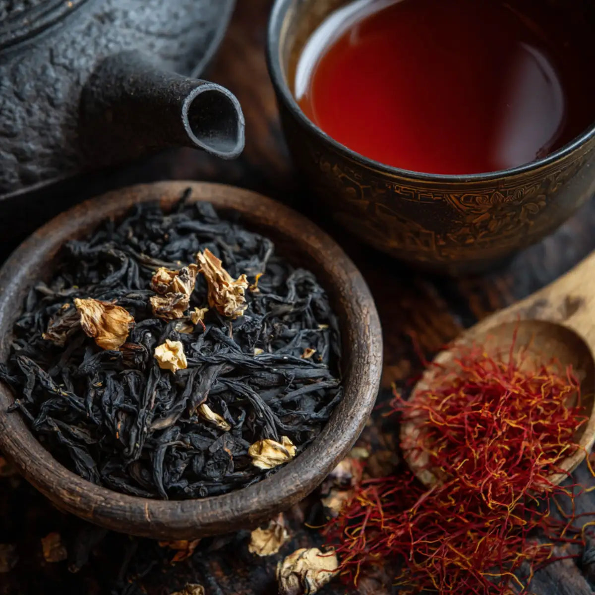 Ein rauchiger, lebendiger Auftakt: Lapsang-Souchong-Schwarztee (Headspace), grünes Galbanum, Kardamom und trockener Pfeffer. Im Herzen entfaltet sich warmer, mineralischer Safran, abgerundet von bitterem Mate, harzigem Weihrauch und pudriger Iris. Die Basis trägt gegerbtes Leder, fruchtigen Osmanthus und erdiges Patschuli in sich, die gemeinsam eine vielschichtige Tiefe aufbauen.