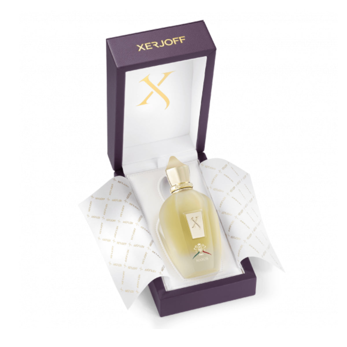 Eine klassische Form, die durch kunstvolle goldene Glasgravuren auffällt. Der kostbare Flakon ist von der typischen goldenen und sehr markanten Xerjoff-Kappe gekrönt.