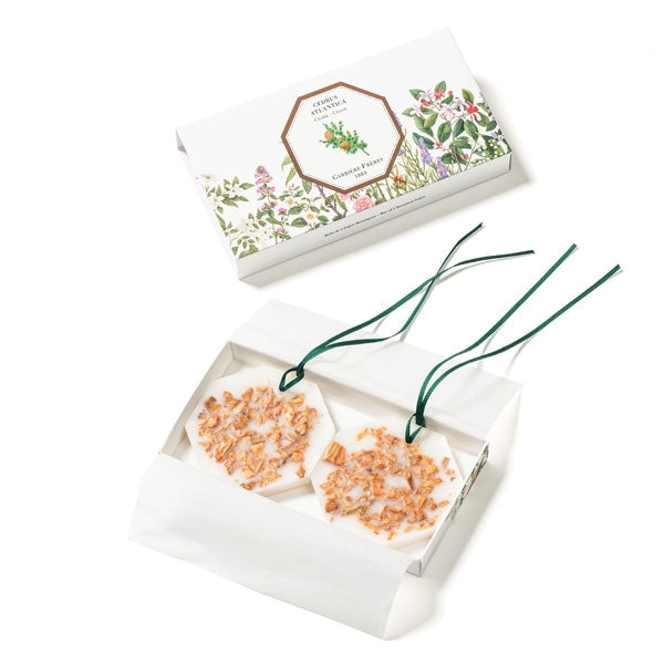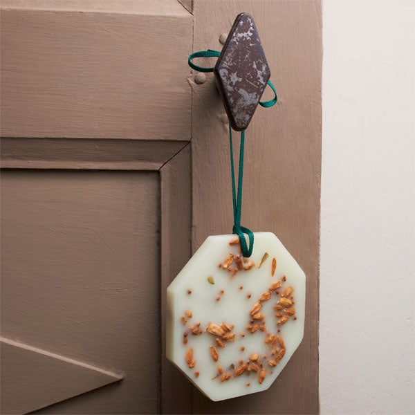 Die Botanical Palets von Carrière Frères sind ein neuartiges Accessoire: Sie sind praktisch und eignen sich für die Parfümierung kleinster Räume, wie z. B. eines Schranks oder einer Schublade. Die Plättchen aus Duftwachs werden in den Werkstätten des Hauses in Handarbeit hergestellt und sind in verschiedenen Düften aus der Palette der botanischen Düfte der Carrière-Frères-Duftkerzen erhältlich. Jedes achteckige Plättchen wird mit einem grünen Baumwollband zum Aufhängen und einem botanischen Element verziert, das von der nachhaltigen Herboristerie de la Chartreuse bezogen wird. Das französische Familienunternehmen achtet darauf, dass jede pflanzliche Zutat entweder aus einem Netzwerk lokaler Erzeuger oder von Partnern stammt, die wegen ihres Engagements für Nachhaltigkeit ausgewählt wurden.