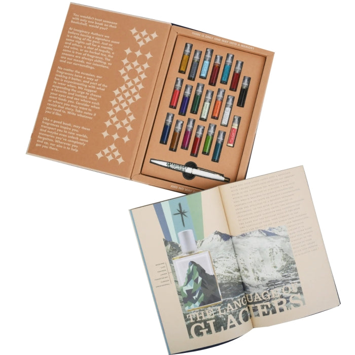 Das Discovery Set enthält zwanzig 2-ml-Glasfläschchen mit allen Düften aus dem aktuellen Sortiment, verpackt mit einem Booklet voller Kunst und Geschichten in limitierter Auflage.