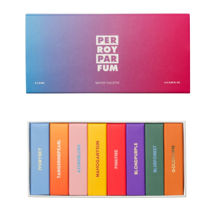 Entdecken Sie alle 8 Düfte von Perroy Parfum die als Stimmungspallete konzipiert sind. Die Fläschchen ermöglichen es Ihnen, sich den ganzen Tag lang nach Ihren Gefühlen und Wünschen zu parfümieren.