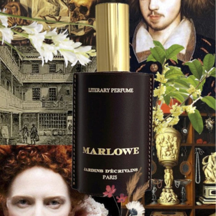 With “Marlowe,” Jardins d'Écrivains gives shape to Elizabethan scholarship through unbridled enthusiasm. This fragrance is intense, beguiling, wild, and theatrical. The top notes reveal the intoxicating nectar of tuberose mixed with osmanthus. The heart is the Elizabethan story of unrequited love, where innocent dried flowers are seduced by the rich and exotic notes of precious myrrh. The theatrical base of powdered leather and mossy animal notes brings Marlow's daring character to life and recalls the mysterious legends that surround his short life.