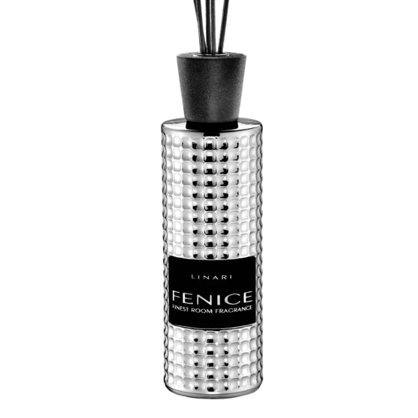 The high-gloss, deep black bottle, the maple wood lid coated with black velvet, together with the silver-embossed black velvet woven label and the black capillary sticks give the bottle its unique elegance.